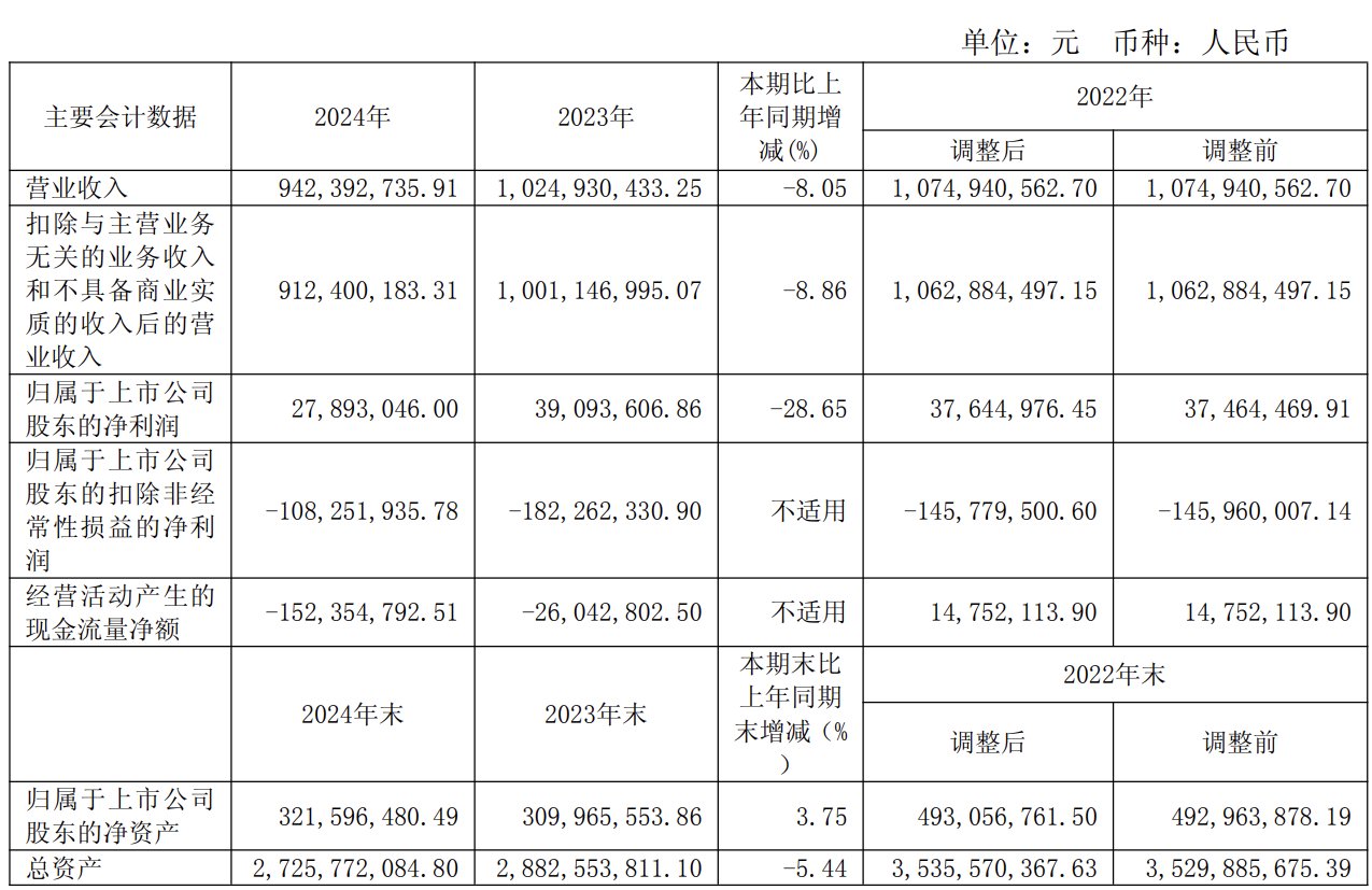 C114讯 4月25日消息(颜翊)大唐电信昨日发布了2024年报告,公司实现营业收入9.42亿元,同比下降8.05%;归属于母公司股东的净利润为2789.3万元,较去年同期下降28.65%。
