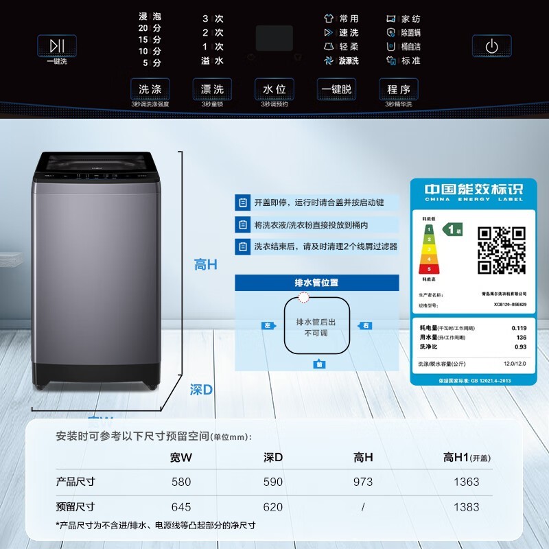 海尔Haier精华洗波轮洗衣机12kg京东好价