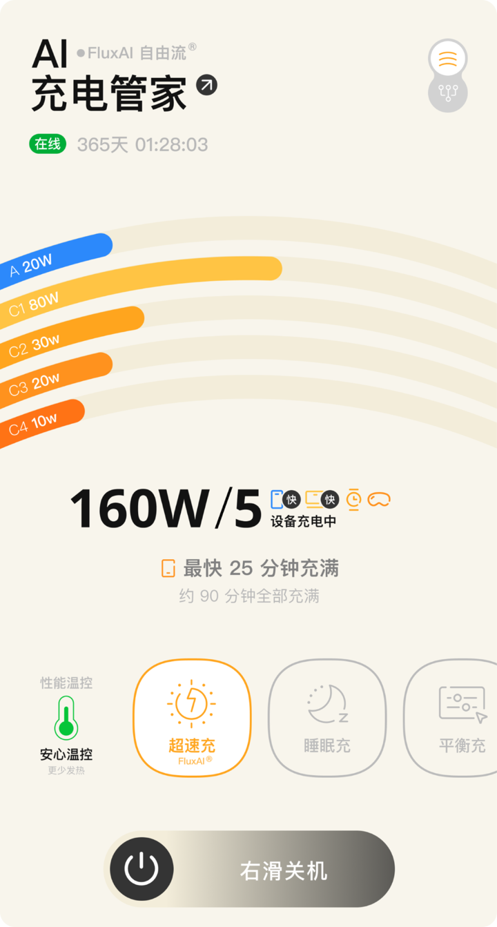 用户可通过 App 全时掌握充电细节,清晰了解每个设备的充电进度、功率以及预估满电时间;也能有效监测历史充电功率与效能利用率,包括温控与安全检测在内的信息一目了然。专业模式和简洁模式,可根据需要自行选择。