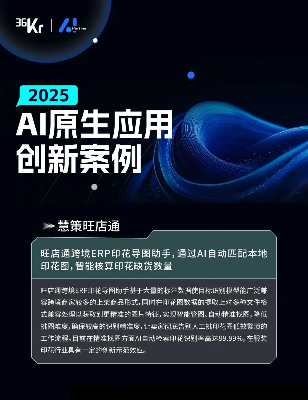 慧策旺店通作为电商ERP服务领域的头部企业受邀参会,凭借其在AI领域的积极探索与创新实践,成为行业关注的焦点。同时,旺店通跨境ERP印花导图助手的AI应用场景,凭借其前沿的“AI自动匹配本地印花图、智能核算印花缺货数量”等功能,成功上榜36氪【2025AI原生应用创新案例】。这一荣誉不仅是对慧策旺店通在AI技术研发与应用落地方面的肯定,也彰显了其在电商ERP服务领域的卓越实力与领先地位。