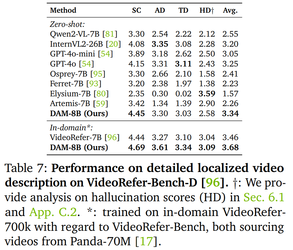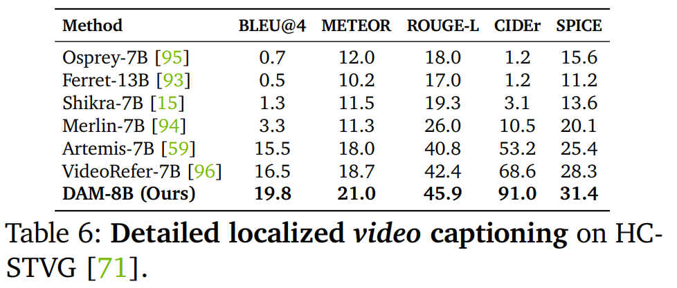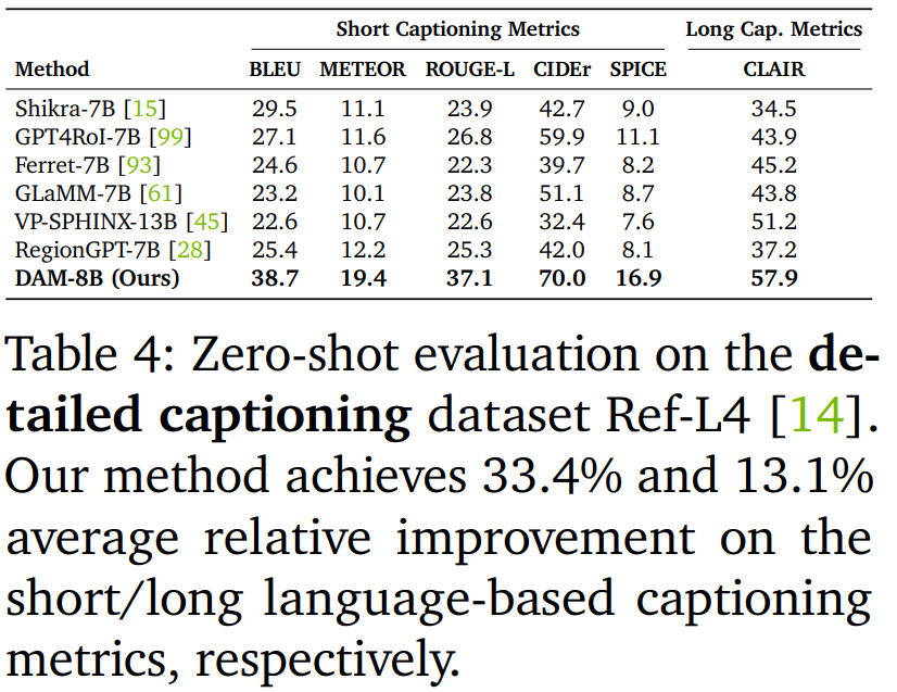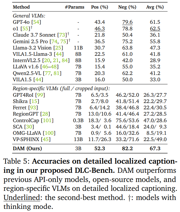 如表 5 所示,DAM 显著优于现有的通用和基于特定区域的 VLM。