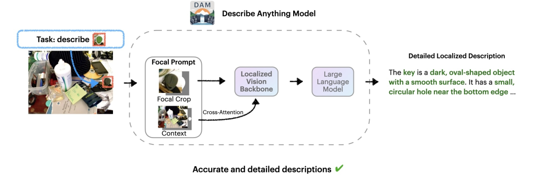 这些组件使 DAM 能够生成详细准确的描述,即使是对于复杂场景中的小物体。