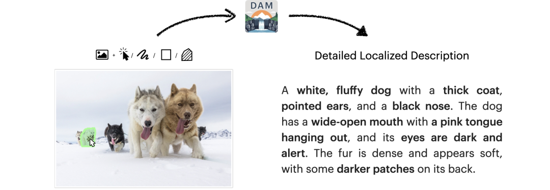 为了解决上述问题,来自英伟达、UC 伯克利等机构的研究者推出了「描述一切模型」 (DAM,Describe Anything Model)。这是一个强大的多模态大语言模型,可以生成图像或视频中特定区域的详细描述。用户可以使用点、框、涂鸦或蒙版来指定区域,DAM 将提供这些区域丰富的上下文描述。