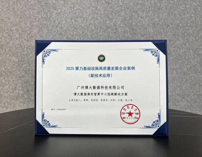 近日,博大数据廊坊智算中心低碳解决方案凭借卓越的技术创新与应用成效,荣获中国通信企业协会《2024-2025年度算力基础设施高质量发展企业案例》认可,获评“新技术应用案例”,在众多申报项目中脱颖而出,为行业树立了绿色发展的新标杆。