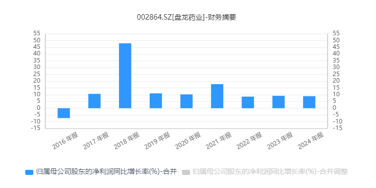 盘龙药业成立于1997年,并于2017年11月在深交所挂牌上市。自2016年以来,公司归母净利润已经实现连续8年增长。