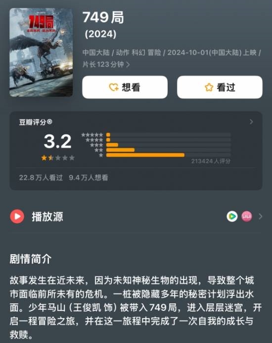这部自2024年国庆档上映后口碑持续崩塌的影片,豆瓣评分仅3.2分,累计票房3.75亿元,与同期《流浪地球3》45亿元票房形成强烈反差。