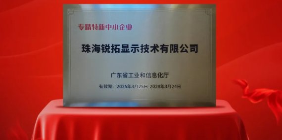 凭借专业的技术与创新能力,优质的服务与精细管理,锐拓显示获“广东省专精特新中小企业”称号和“广东省创新型中小企业”称号。