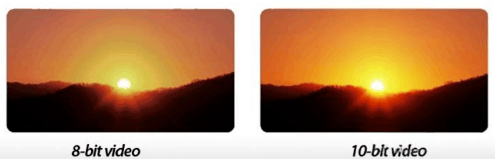 色阶越大,颜色之间的过渡就越自然。如上图所示,8bit图像中的阳光周围有着明显的一圈纹路,反馈10bit就非常自然。