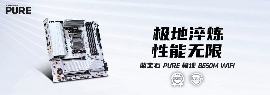 今日,蓝宝石科技又有好消息,正式推出旗下全新主板产品—— 蓝宝石 PURE极地B650MWIFI,家族成员再加一咯。这款主板凭借其出色的性能、高颜值设计以及亲民的价格或将成为AM5平台终端市场的“破局者”,同时也是给了DIY玩家们又一个不错的装机选择。