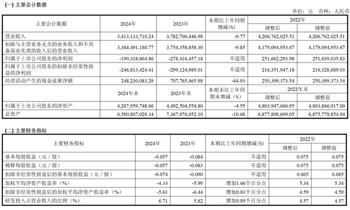 4月26日,昆山龙腾光电股份有限公司发布2024 年年度报告。报告期内,公司实现营业总收入34.13亿元,较上年同期减少9.77%;归母净利润亏损19,031.87 万元,较上年同期改善31.64%;扣非净利润亏损24,681.34 万元,较上年同期改善17.49%。截至2024年12月31日,公司资产负债率34.84%,处于行业较低水平。
