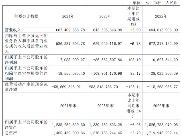 截至2024 年12 月31 日,公司总资产148,543.20 万元,同比下降5.79%;归属于上市公司股东的净资产123,825.28 万元,同比下降6.93%。