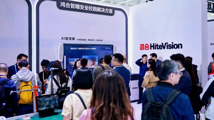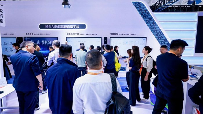 在“健康战略”框架落地的技术支撑层面,鸿合科技同步构建“健康-关爱-AI-国产化”四维引擎,形成从数据感知到价值转化的完整闭环。其中健康维度聚焦师生身心状态与校园安全;关爱维度运用科技手段实现心理筛查与干预;AI技术深度赋能教学全场景;全栈国产化方案则通过自主芯片、系统及应用开发,为教育现代化注入安全动能。展会期间,鸿合科技还与算能科技达成战略合作,共同推进教育数字化国产化进程。