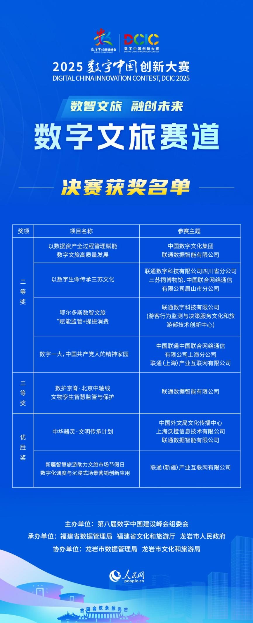近日,由第八届数字中国建设峰会组委会主办的“2025数字中国创新大赛”于福建龙岩圆满落幕。中国联通以7项获奖的显著成绩成为获奖项目最多的参赛企业,项目覆盖“数据要素x文化旅游”的多个细分场景。这不仅体现了中国联通以融合创新促进文旅行业数据要素价值释放的强大实力,更彰显了联通服务文化强国和旅游强国的使命担当。