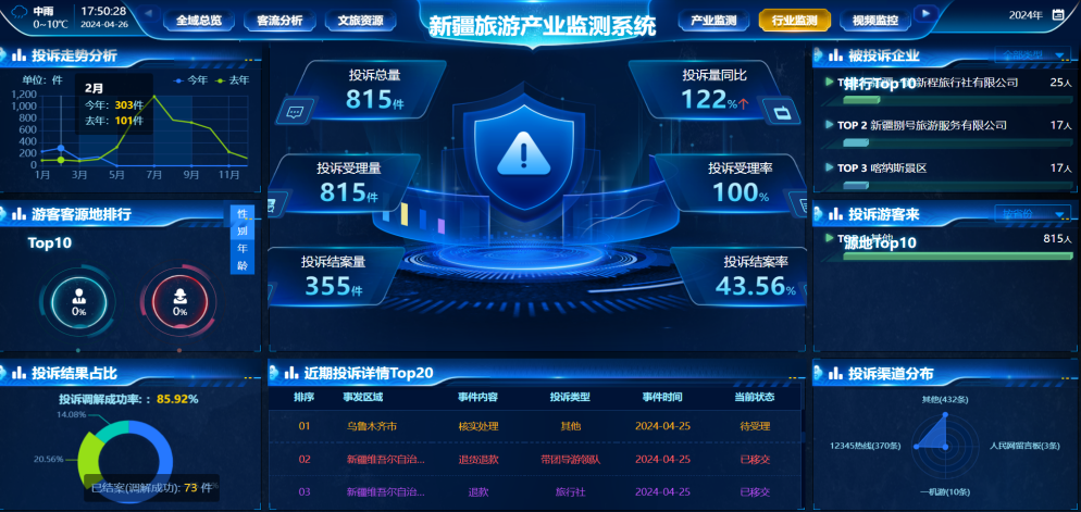 新疆智慧旅游助力文旅市场节假日超数字化调度与沉浸式场景营销创新应用,以“一码游”技术为基础,打造景区预约预订、订酒店、购特产、景区慢直播、手绘地图、语音导览等特色服务功能,真正实现“一码游遍新疆”;依托联通大数据能力实现了各类涉旅数据、视频的整合接入,为新疆文旅主管部门提供了全新的决策依据,实现了“看得见、呼得通、连得上、管得住”的实时调度效果。