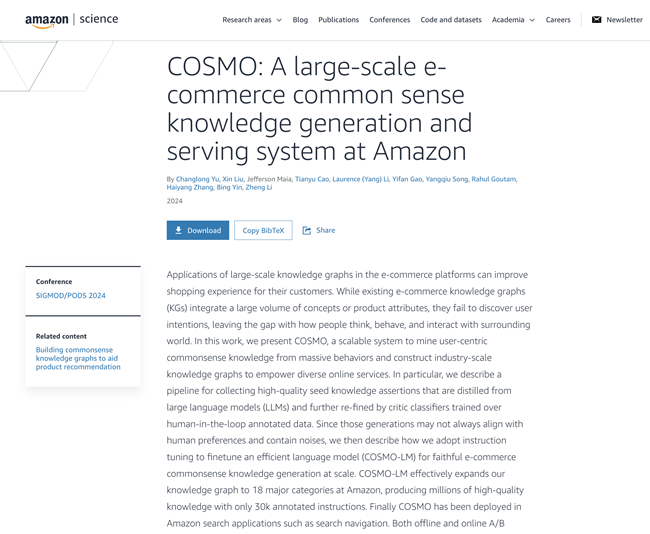 这种个性化推荐基于Cosmo算法背后的全域数据分析系统,数据不仅包含亚马逊站内信息,还涵盖全网数据。