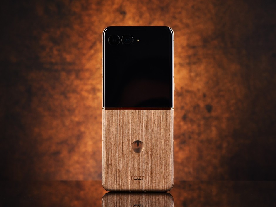 MOTO razr 60 Ultra在机身材质上提供 Alcantara 环保纤维、实木、缎光玻璃、仿皮革四种材质,其中实木版嵌入天然檀香微粒,开箱散发淡雅香氛;Alcantara 版触感细腻,抗污性提升 60%。