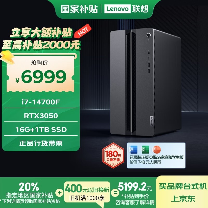 联想GeekPro游戏台式机京东补贴后低至5599元