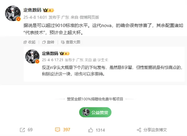 华为nova 14 Pro和Ultra版本则有望搭载旗舰级麒麟9系芯片,性能较前代显著提升。