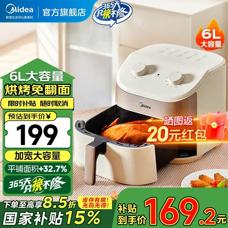 美的空气炸锅KZE6017家用全自动空气炸锅京东到手114元