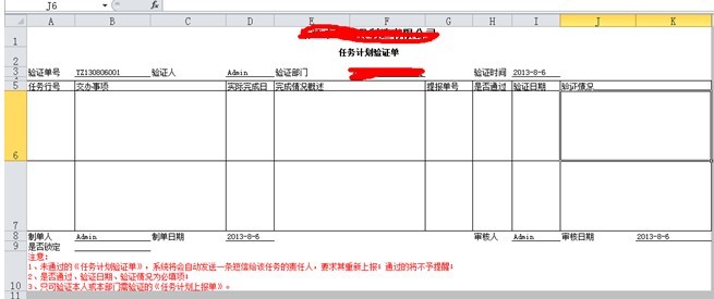 同样是选定任务行号,系统会自动跳出相应的任务,选定需要验证的任务单号,把表单填写完全,点击保存后,系统会自动提醒相关责任人,任务是否通过,如果没有通过,则相关人员需对任务重新实施后,再进行提报。