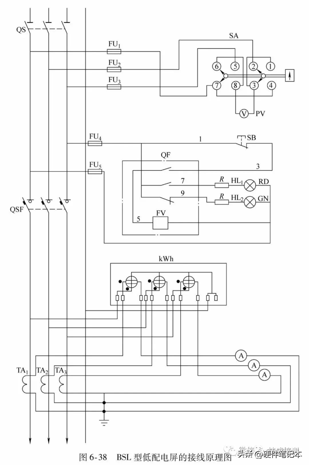 23.低压二次接线原理图(BSL型低压配电屏接线原理图)