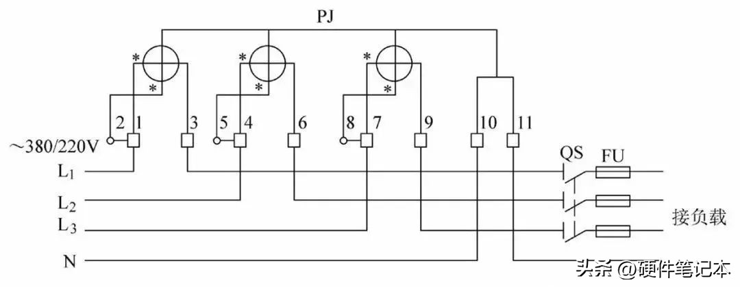 14.三相有功电能表直入式接线图