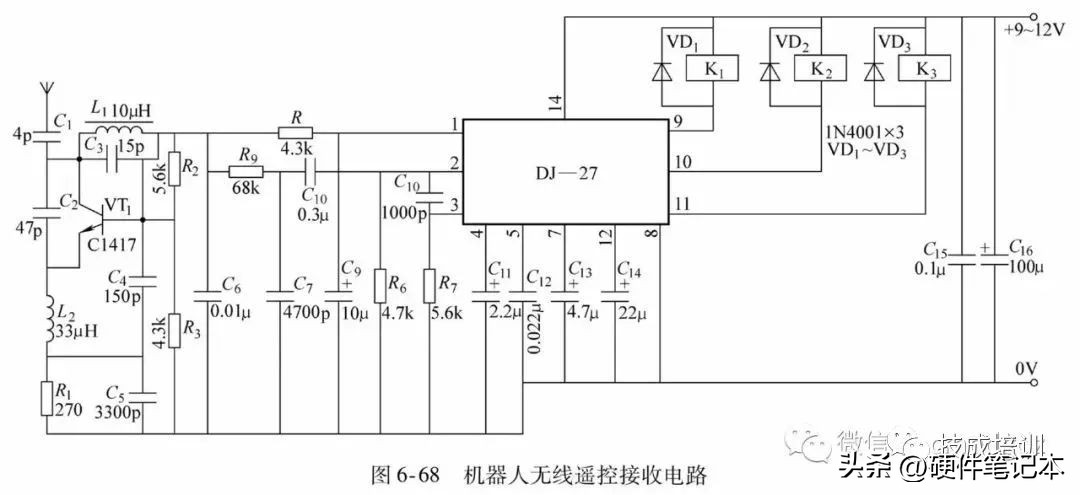 42.机器人无线遥控电路(以遥控距离为1000m的三通道IC型无线遥控器为例)