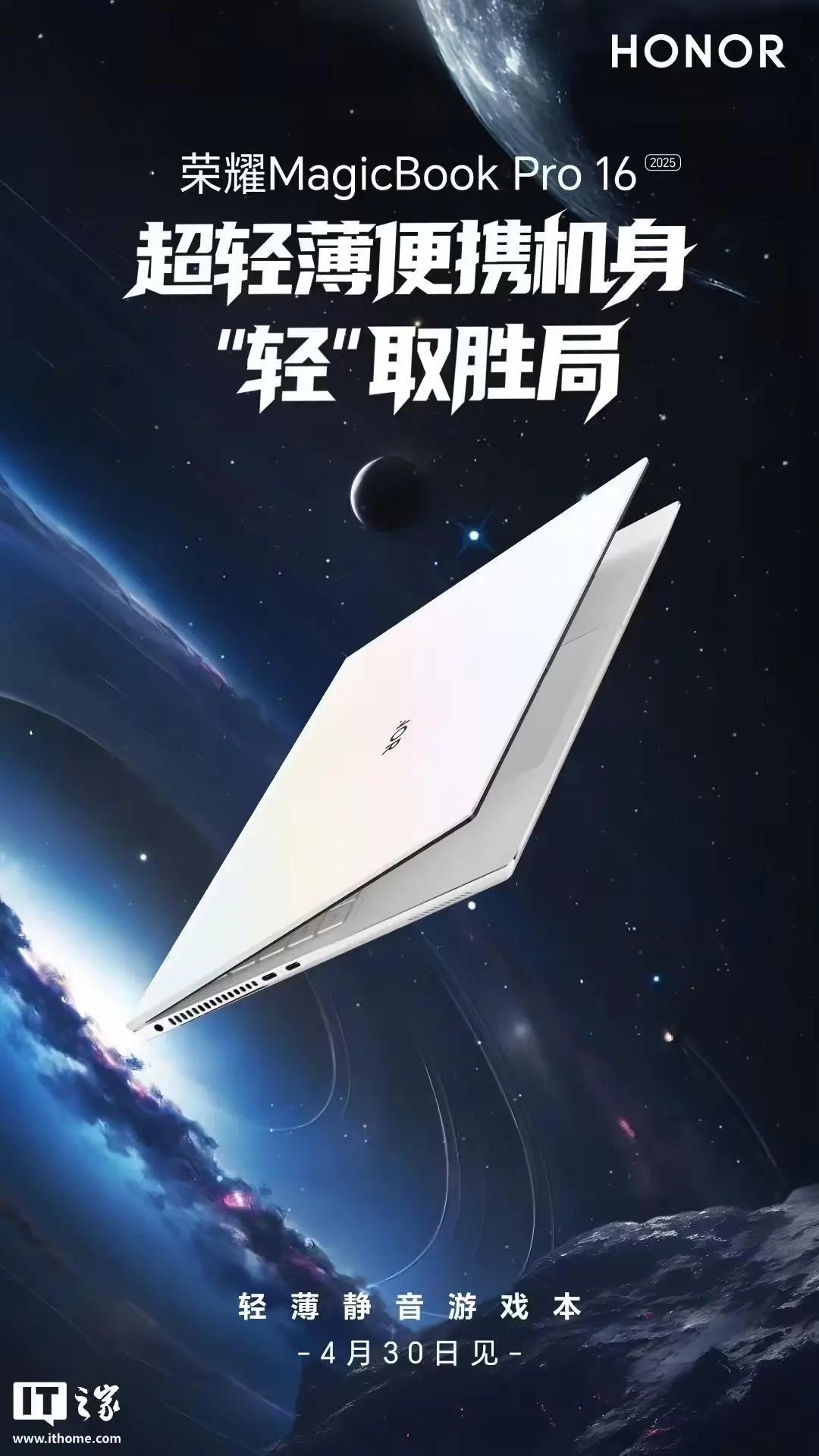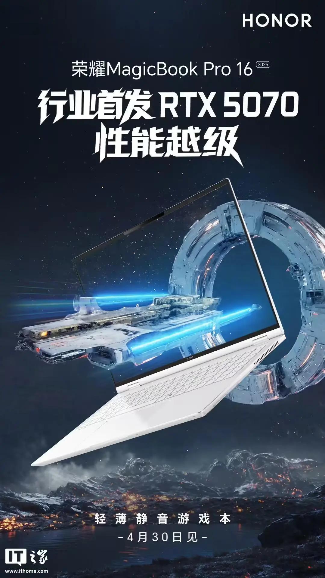 荣耀手机官方现开启新品笔记本预热:荣耀MagicBook Pro16采用超轻薄便携机身设计,将支持“静音高性能2.0”、同时行业首发RTX 5070。