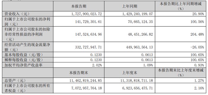 报告期内,蔚蓝锂芯营业利润、利润总额、净利润、归母净利润分别为 18,081.58 万元、18,155.84 万元、15,801.70 万元、14,172.93 万元,较上年同期分别增长 74.45%、75.20%、90.42%及 100.56%,主要为报告期内公司锂电池、LED 业务盈利较上年同期增长;