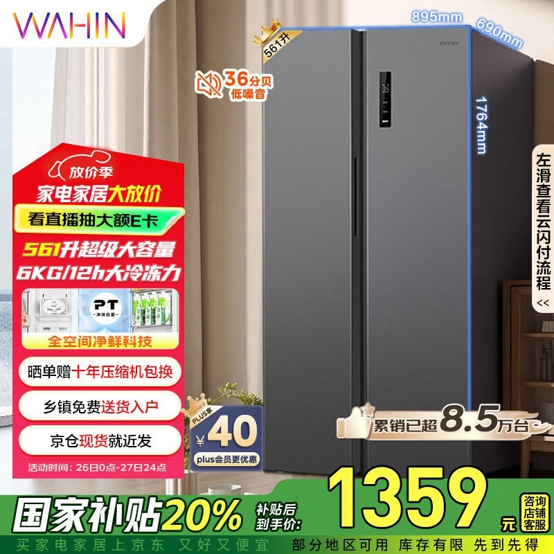 华凌对开门冰箱HR-589WKP双变频一级能效京东特惠至1226元