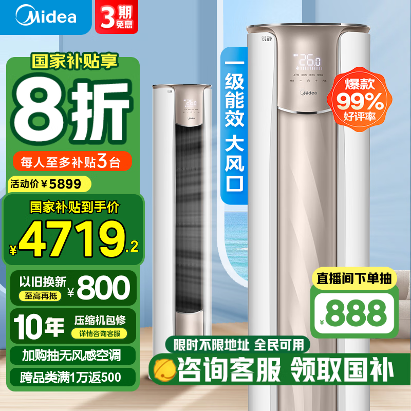 美的3匹立柜式空调锐云系列新一级能效变频