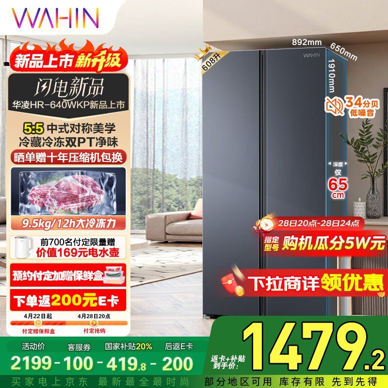 华凌大容量双开门冰箱享国家补贴到手仅1472元