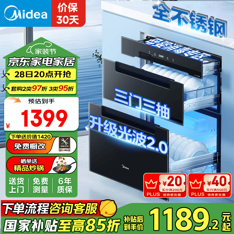 美的110HQ2pro嵌入式消毒柜家用三层110L大容量高效消毒