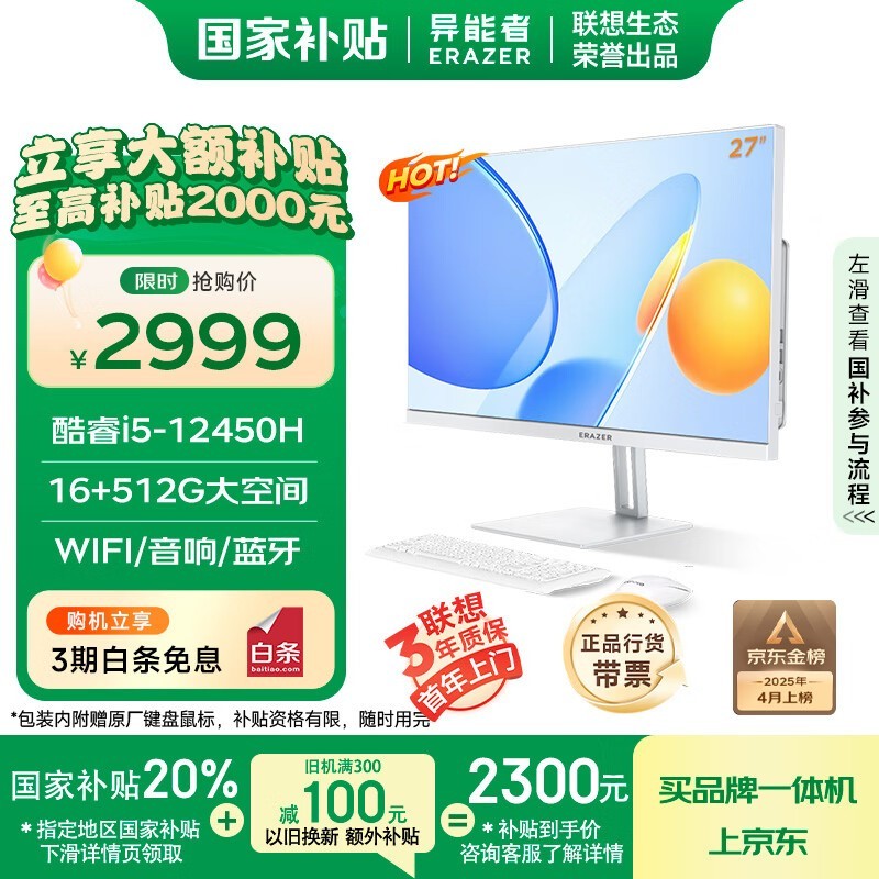 联想Lenovo异能者27英寸一体机电脑i5-12450H处理器促销