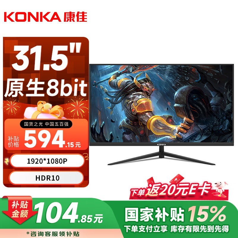 康佳31英寸显示器KM3219高清微边框仅590元