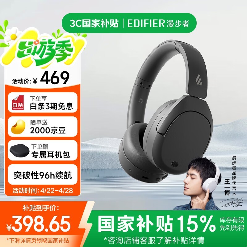 漫步者W830NB蓝牙耳机4月22日开售,领券449元