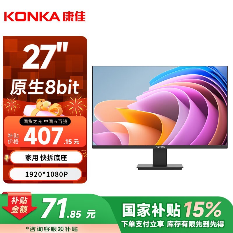 康佳KM2712显示器27英寸高清大屏仅404元