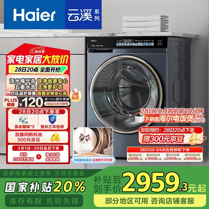 海尔精华洗2.0云溪10kg滚筒洗衣机超值价