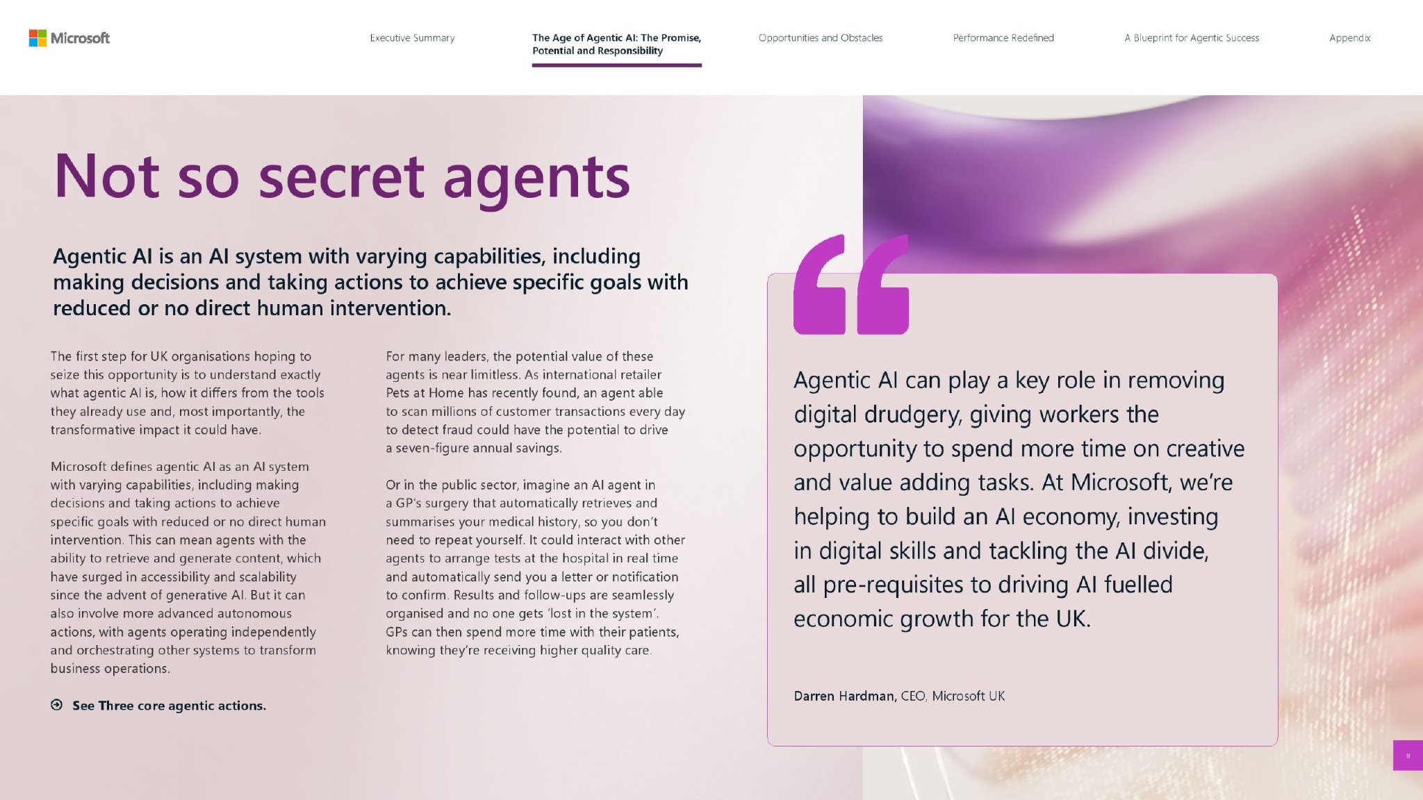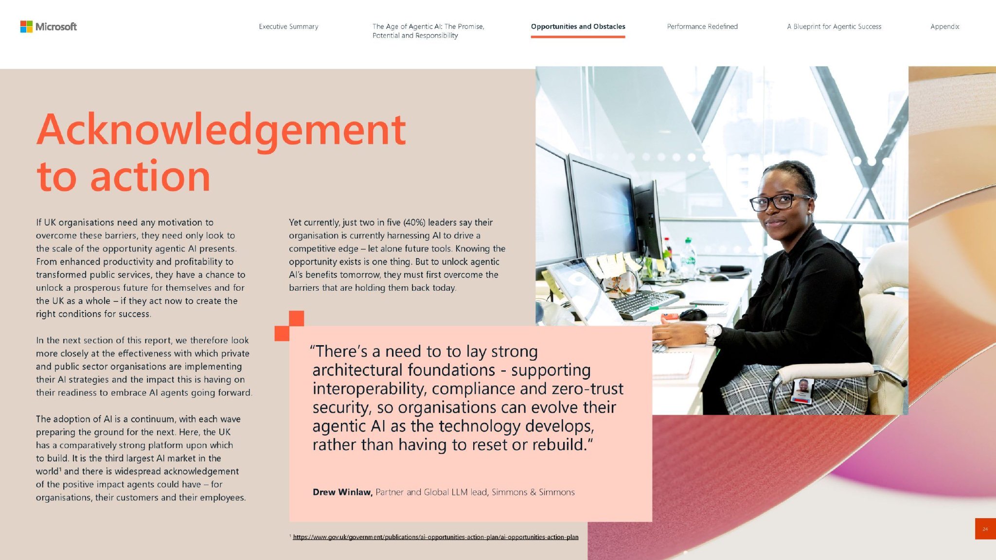 报告最后为代理式AI成功制定了一个清晰且实用的蓝图。通过今天奠定正确的AI基础,并遵循微软的三阶段代理采用方法,英国组织可以装备自己在代理式AI时代蓬勃发展,并最终支持政府对AI繁荣的宏伟抱负。