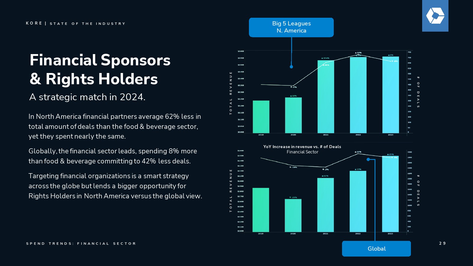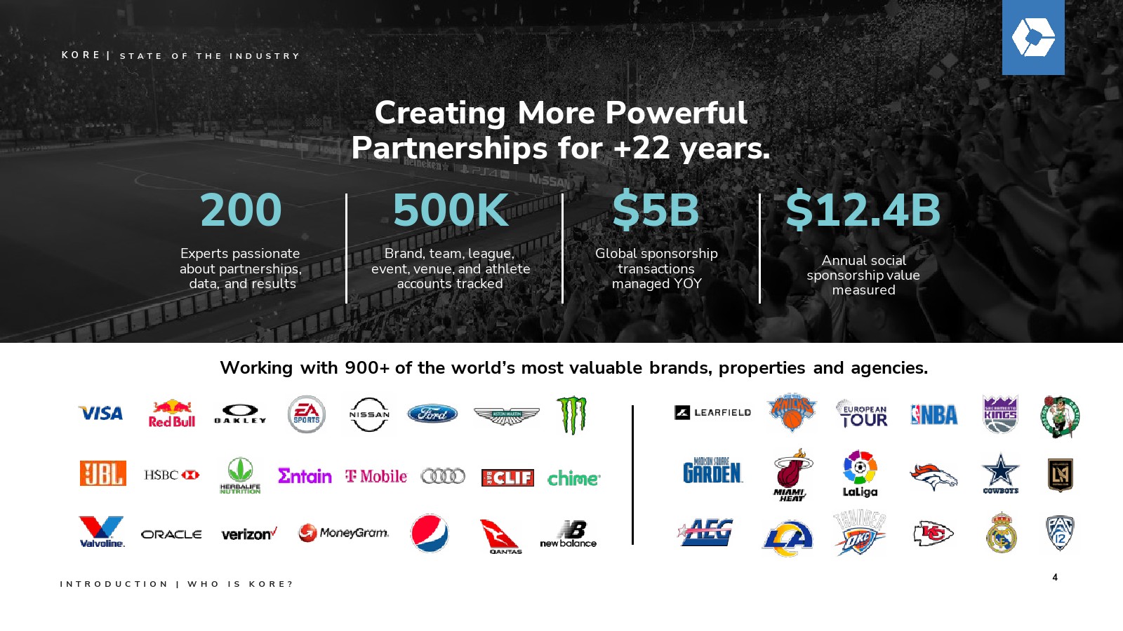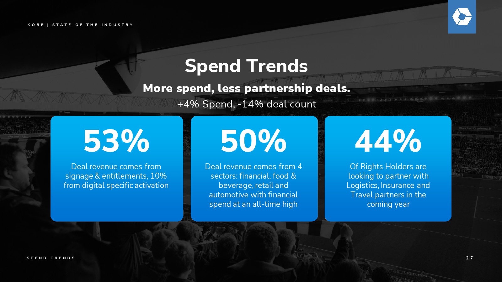 去年,KORE发起了一场关于赞助增长力量的关键对话,预测该行业将在2027年突破1160亿美元的支出规模。今年,我们继续用具体数据验证这一远见:通过我们的数据点、分析、行业调查和洞察所揭示的明确价值与增长轨迹。