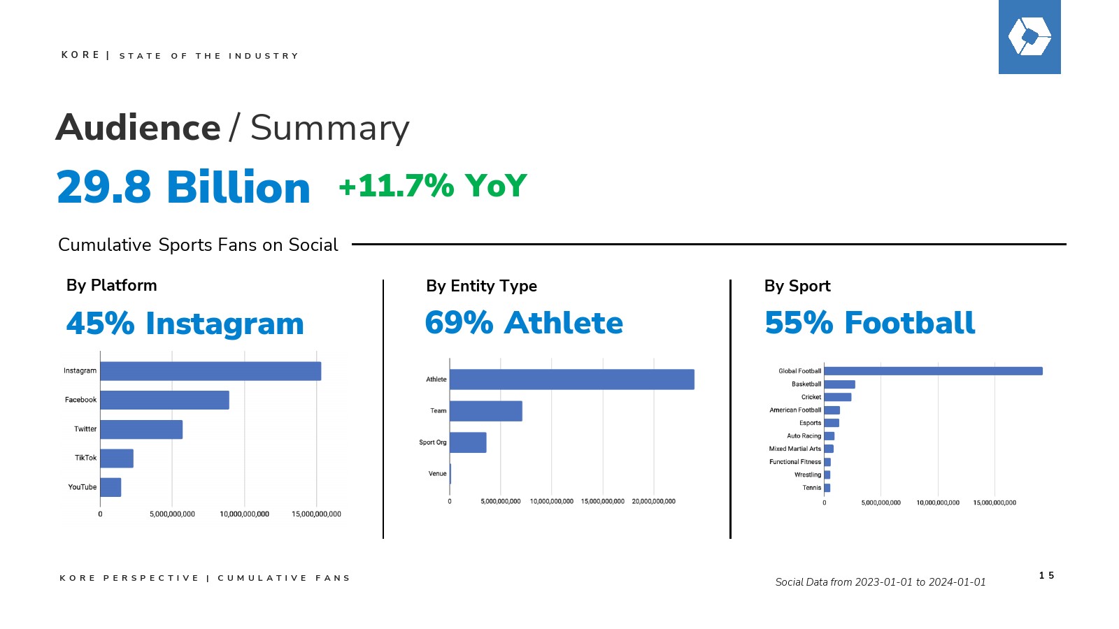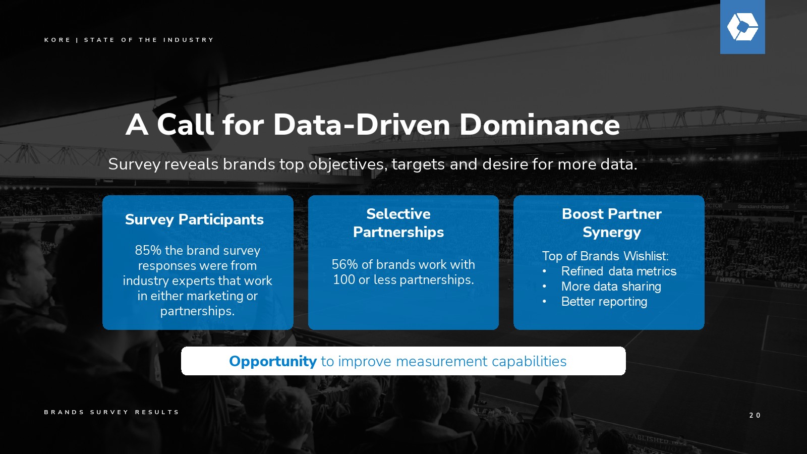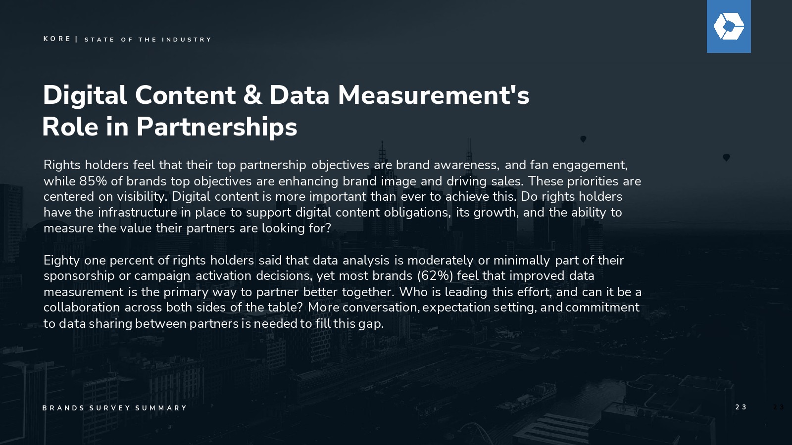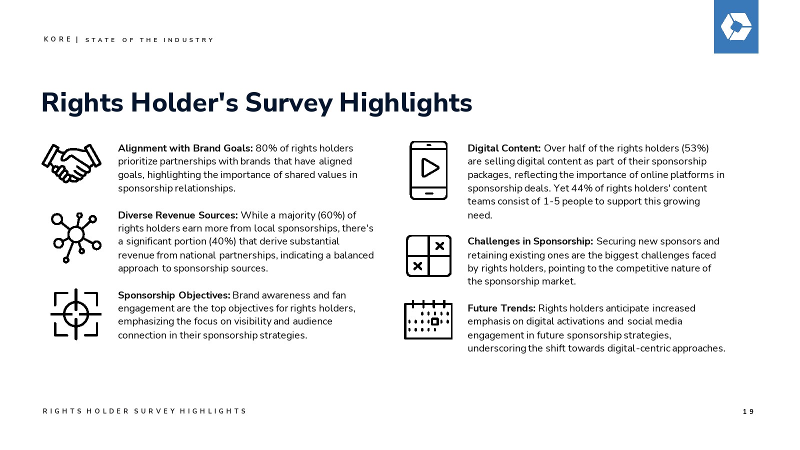 去年,KORE发起了一场关于赞助增长力量的关键对话,预测该行业将在2027年突破1160亿美元的支出规模。今年,我们继续用具体数据验证这一远见:通过我们的数据点、分析、行业调查和洞察所揭示的明确价值与增长轨迹。
