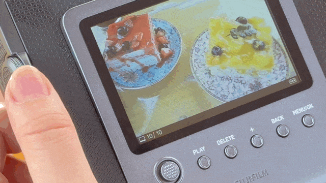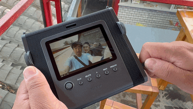 与传统拍立得相机拍完直出不同,富士instax WIDE Evo可以预览后选择满意的照片再进行打印。例如,我每次外出拍摄完,都会到家再通过相机的屏幕回看照片,再通过旋转"出片曲柄"打印喜欢的照片。这样不仅保证了成片效率,操作与打印的过程也更有仪式感。