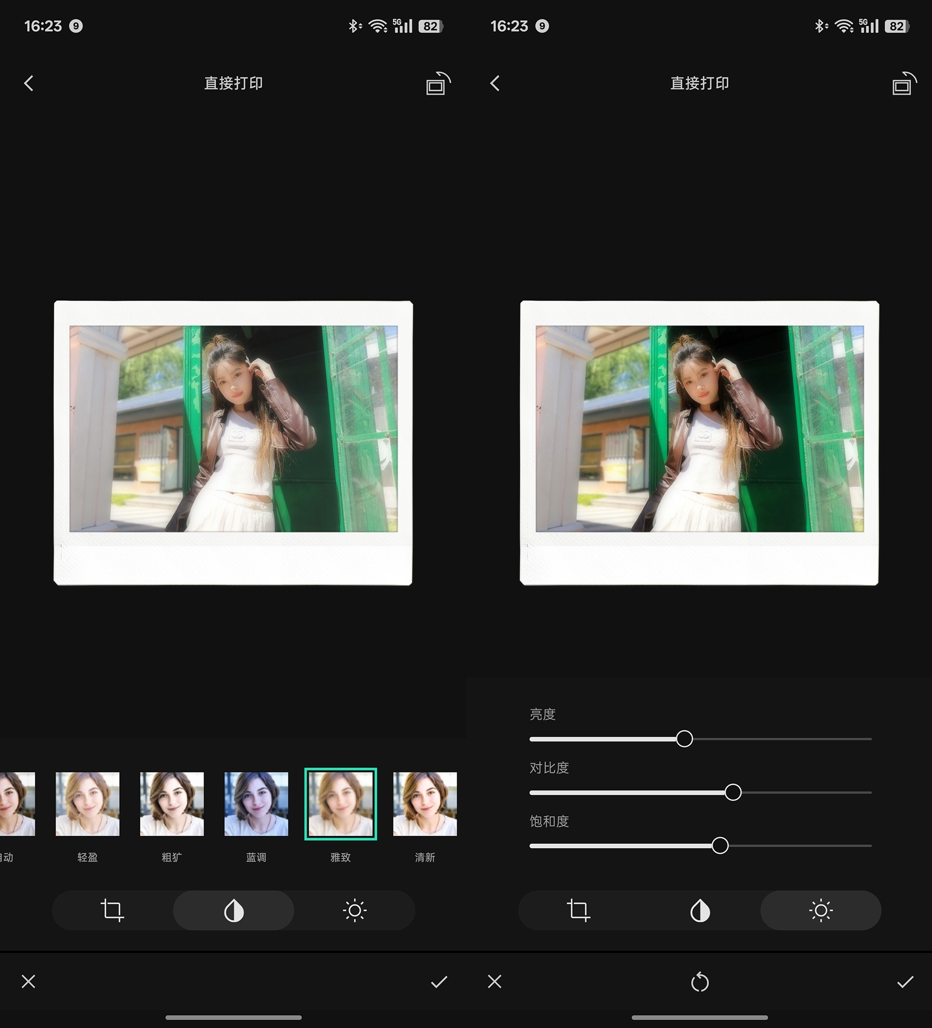 在打印照片时,不仅可以直接选择手机内存储的照片,还可以通过App对照片进行简单的后期调整,例如亮度、对比度、饱和度等,还可以为照片添加内置的滤镜效果。在打印过程完成之后,你就可以通过APP将电子版的相纸保存至本地手机相册了。