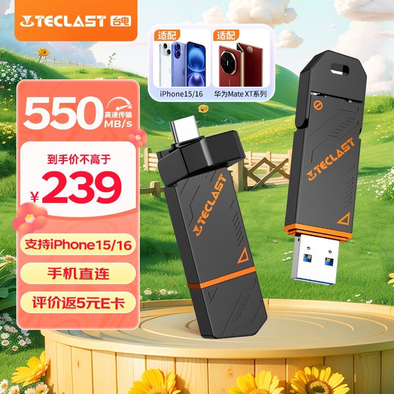 台电512GB Type-C USB3固态U盘高效存储低至203元
