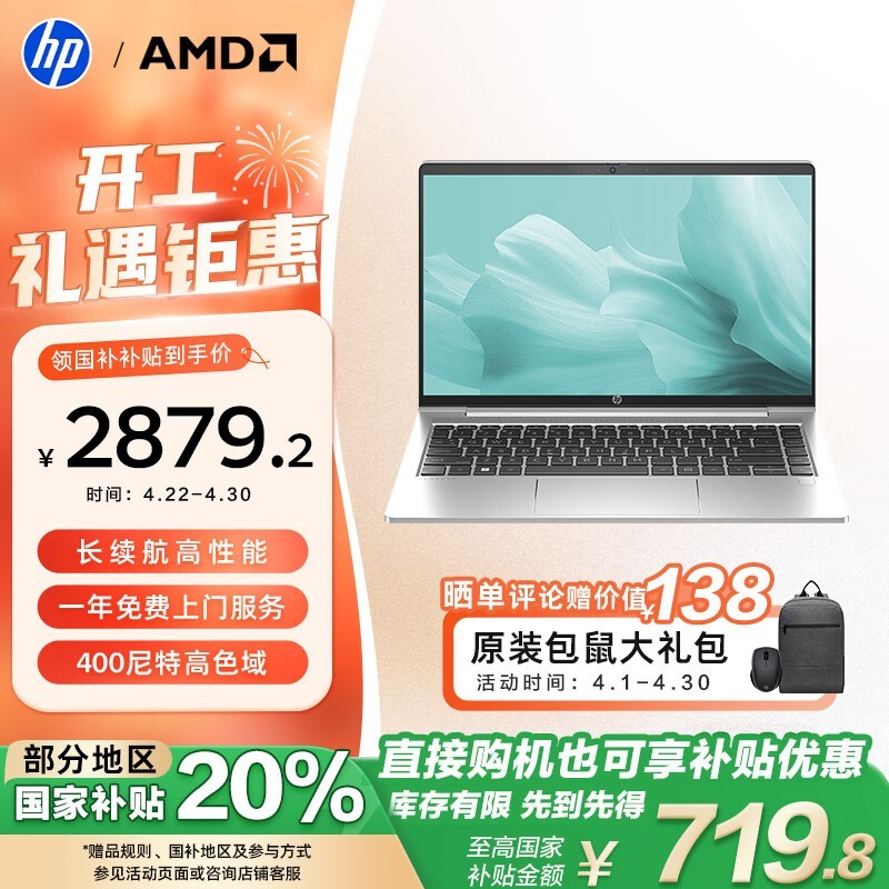 惠普战66 2023款七代锐龙版轻薄本 R7-7730U 15.6英寸高色域屏