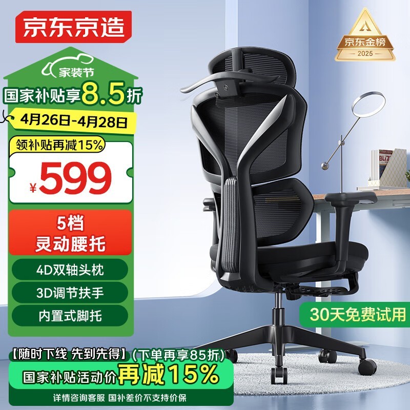 京东京造Z7 Pro人体工学椅黑色款舒适座椅促销