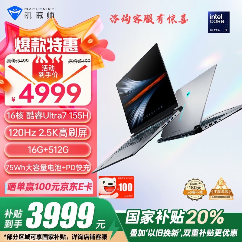 机械师曙光16Air酷睿Ultra版轻薄本特惠