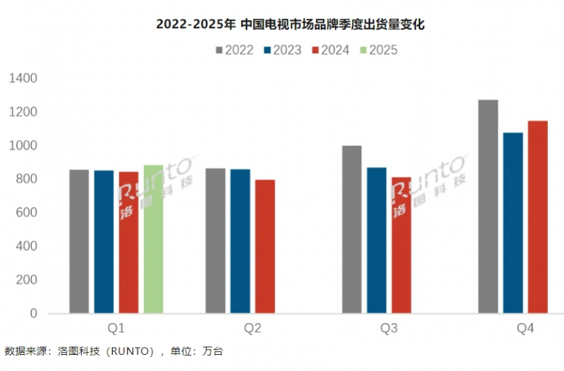 “以旧换新”政策支持下,中国电视市场呈复苏态势。市场调研机构Omdia数据显示, TCL品牌电视2024年全球销量2900万台,全球第二,中国品牌第一。洛图科技最新数据显示,2025年第一季度中国电视市场品牌整机出货量为884万台,较2024年同期增长4.7%。凭借超200万台出货量,TCL Mini LED电视一季度稳居行业第一。