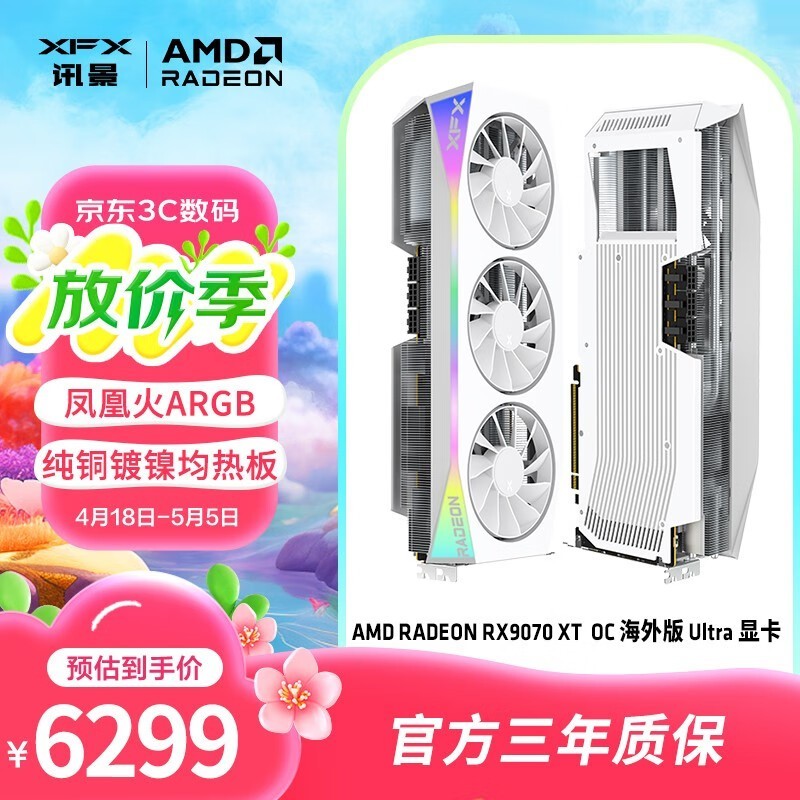 讯景RADEON RX 9070 XT OC显卡16GB大显存游戏创作两相宜