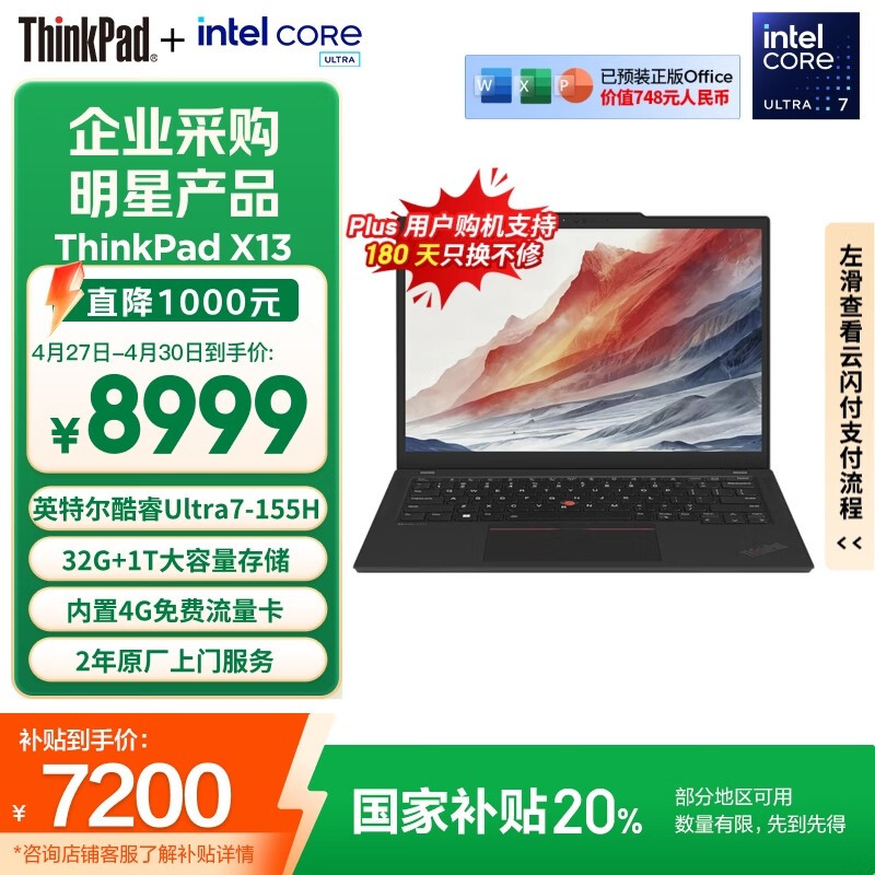 ThinkPad X13全互联笔记本,酷睿Ultra7,32G+1TB,AI加持,轻薄高效